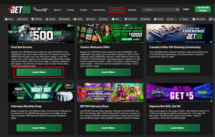 - Terms & Conditions are available under the Learn More link on each promotion.