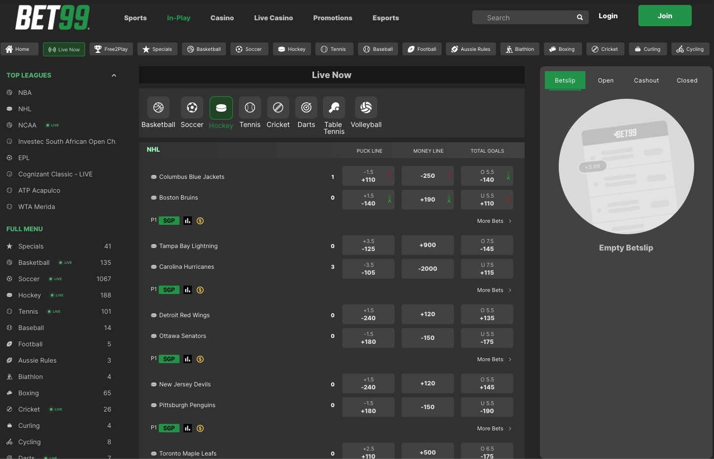 - To bet In-Play after a game has started, click on the 'In Play' or "Live now" tab to see live sports markets.