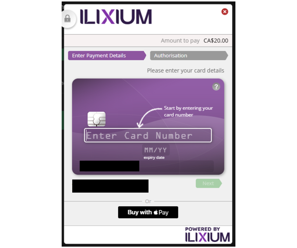 A payment processor window will appear where you must enter your credit card information.