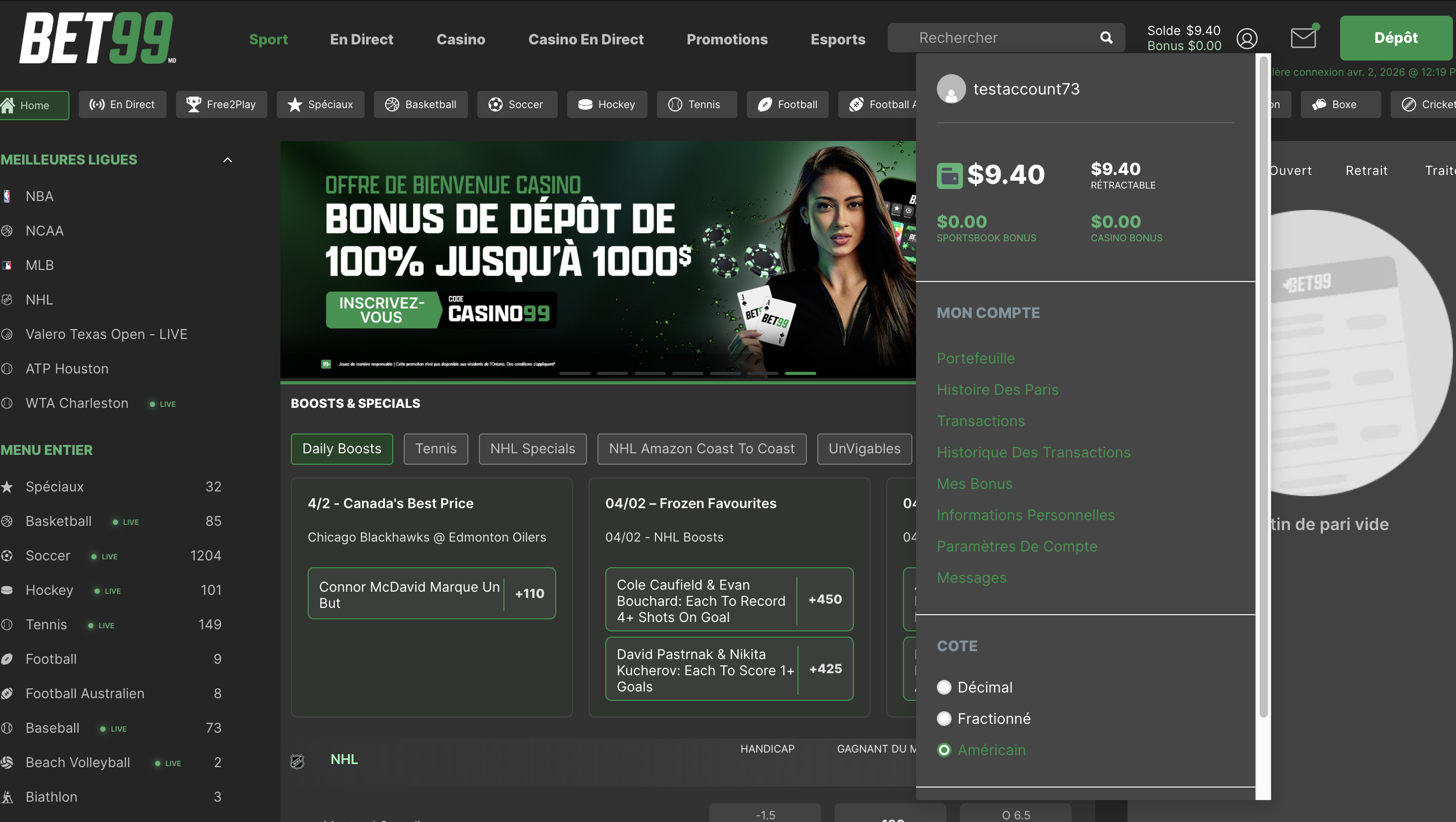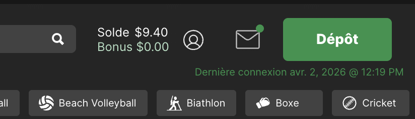 Vous pouvez vérifier rapidement votre historique du Casino dans « My Profile » en cliquant sur les fonds à côté du bouton deposit.