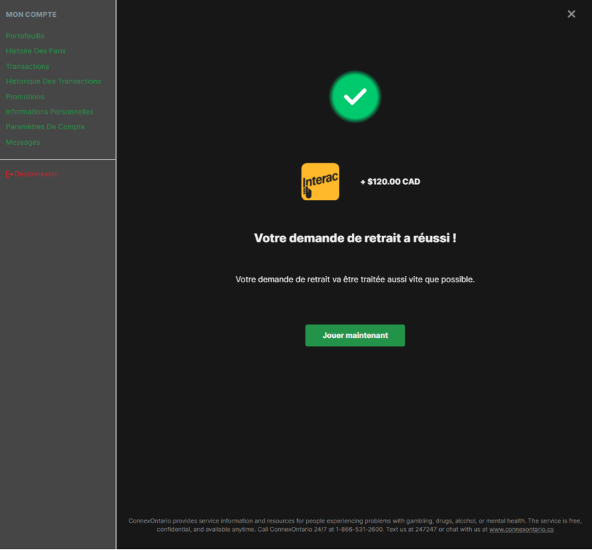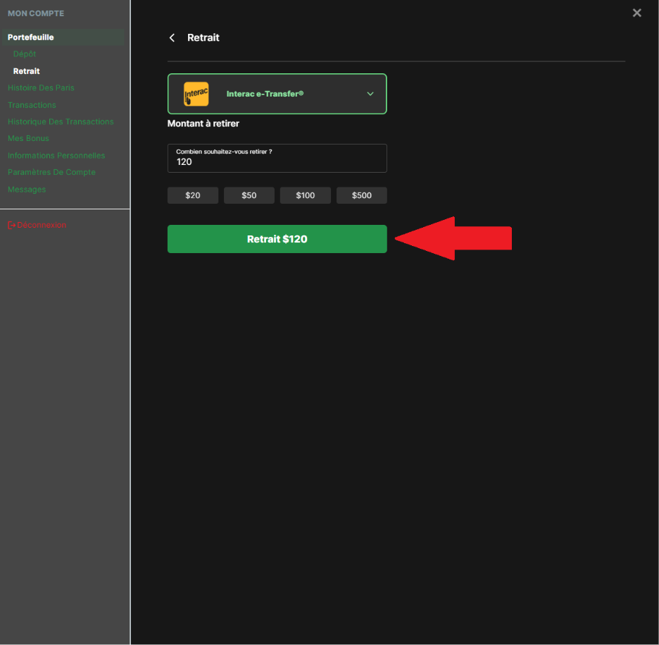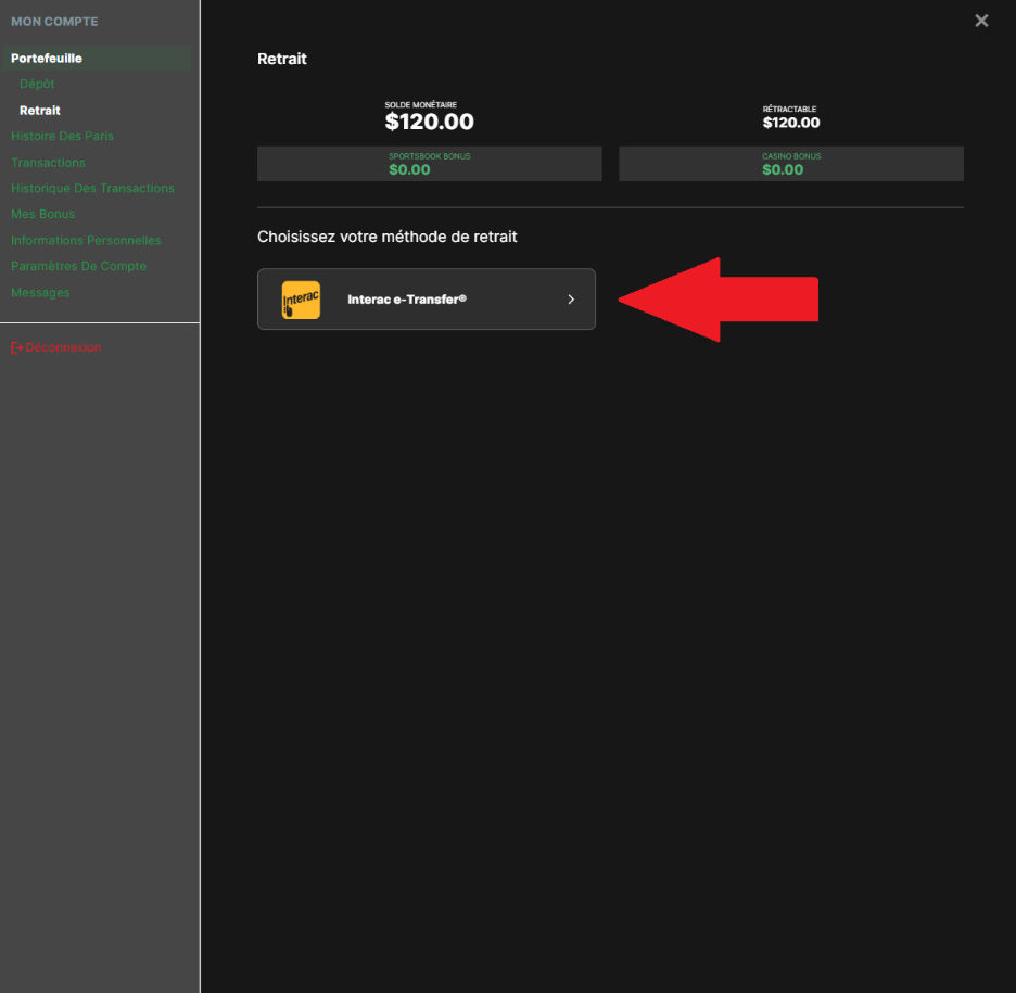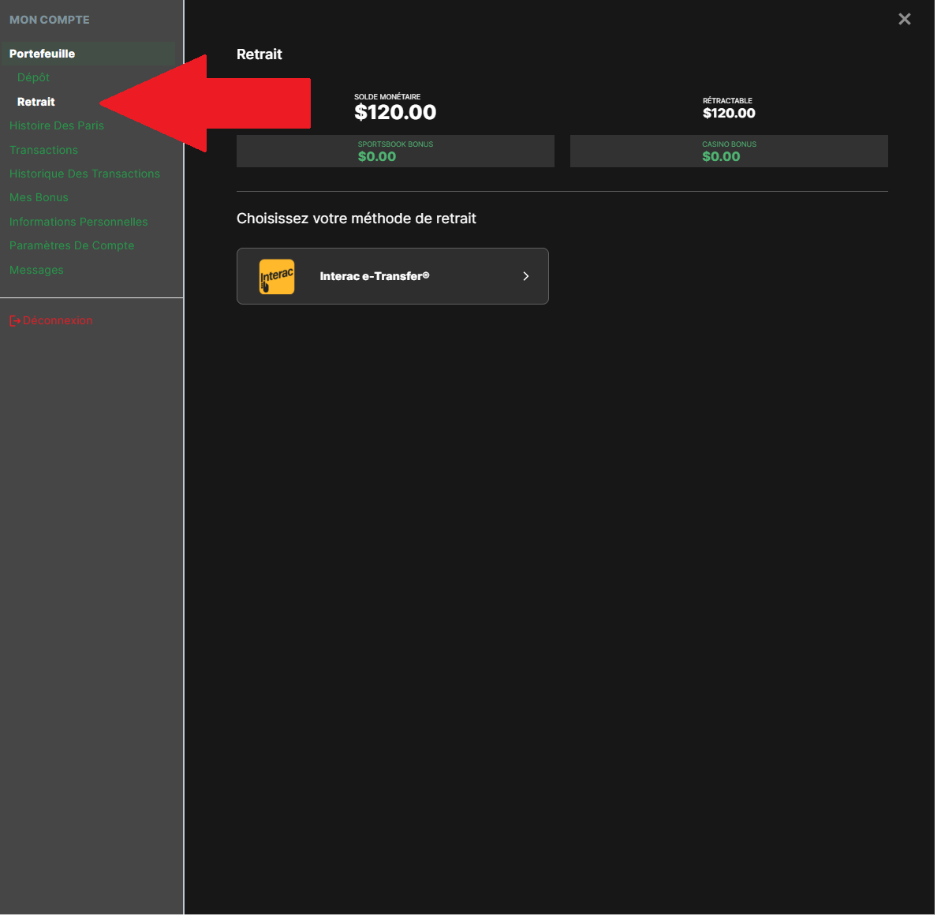 Veuillez noter que les retraits doivent généralement être effectués en utilisant une méthode de paiement déjà utilisée pour un dépôt.