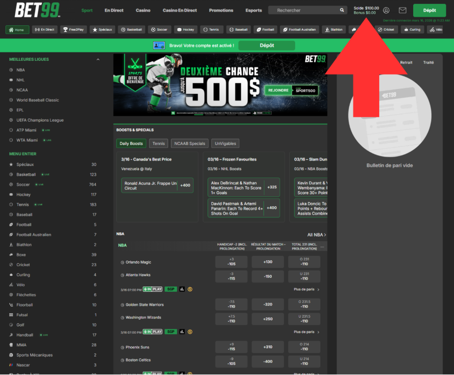 Une fois le dépôt complété, BET99 vous enverra un courriel confirmant la transaction réussie.