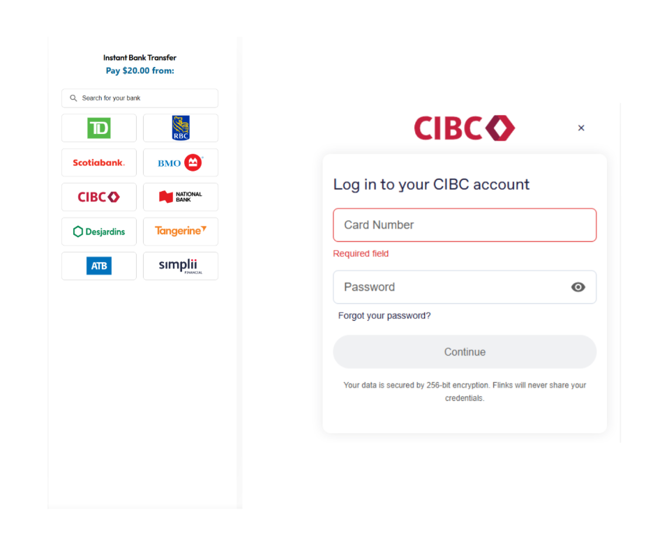 Entrez vos identifiants de banque en ligne et suivez les instructions pour continuer la transaction.