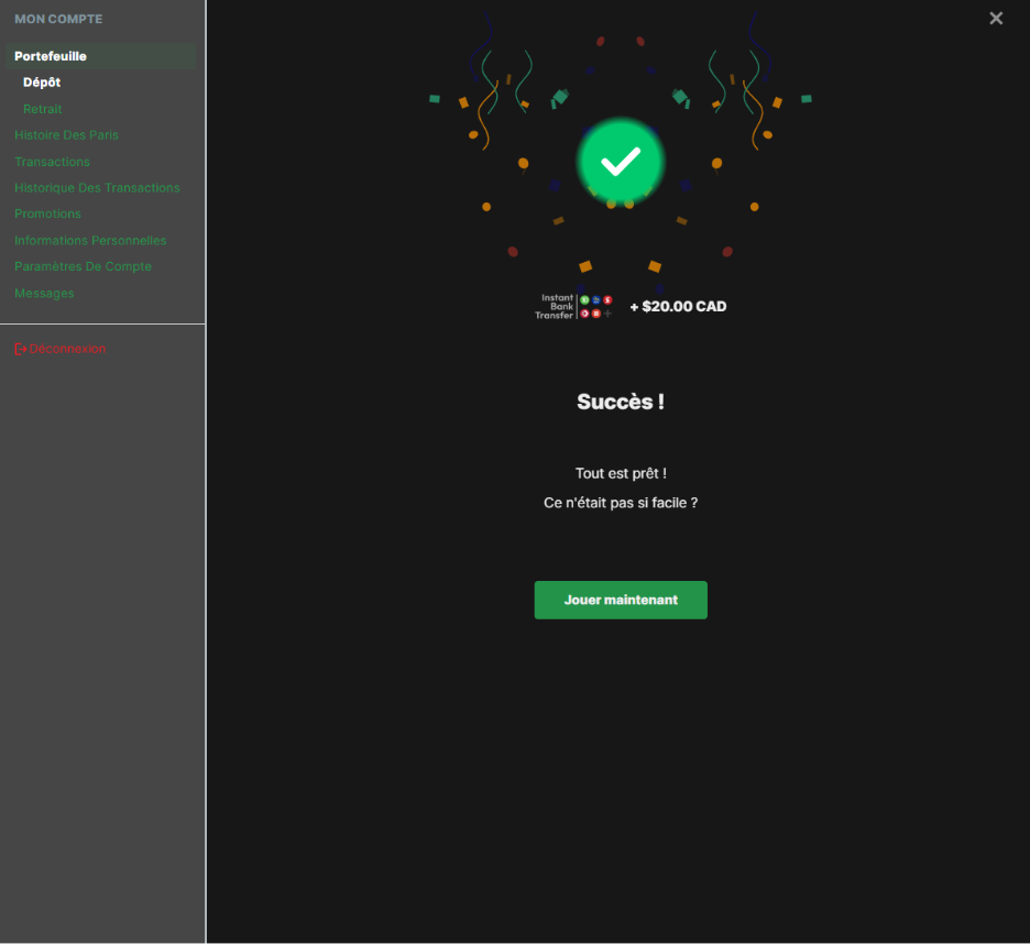 Cela ouvrira la fenêtre de dépôt où vous pourrez choisir votre méthode de paiement.