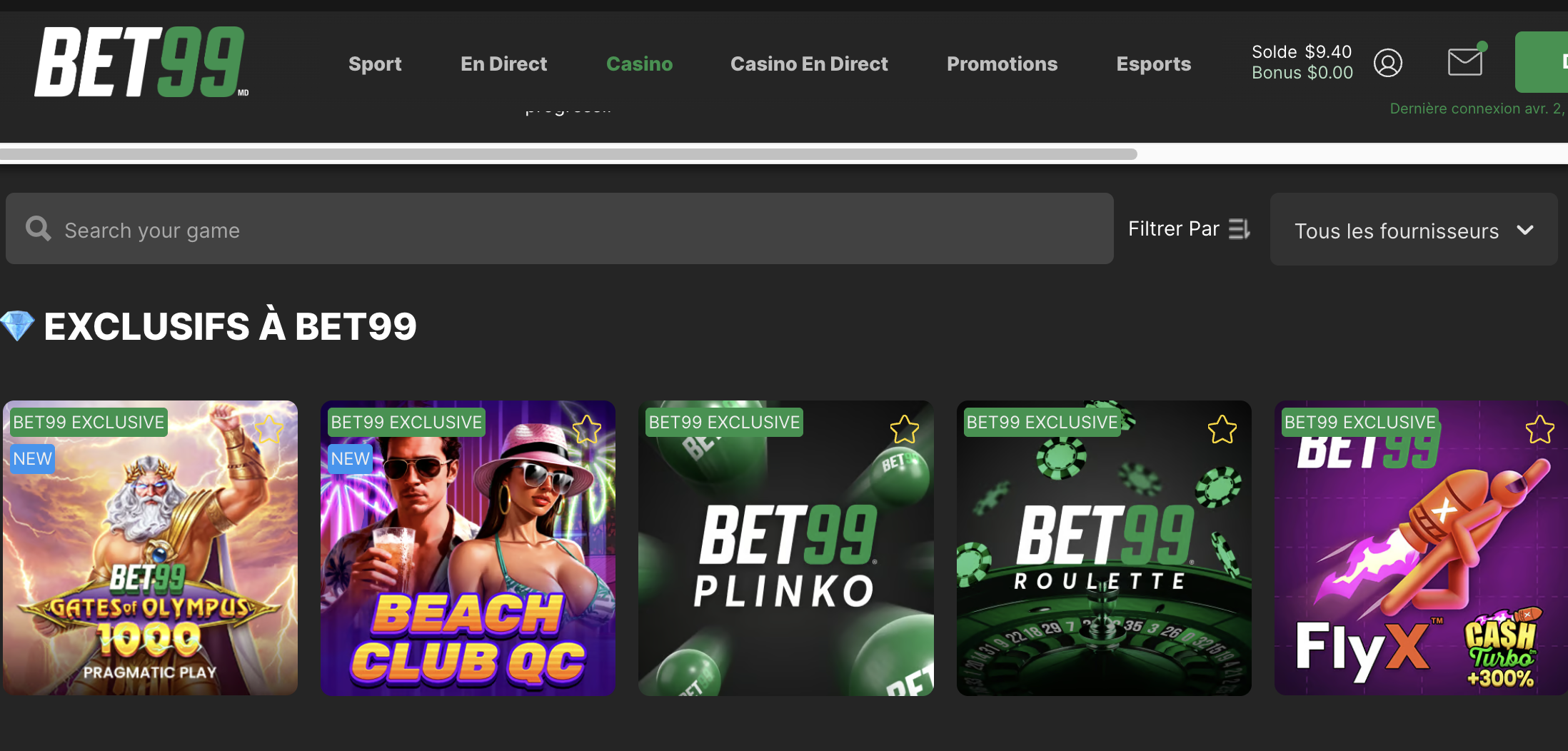 Comment rechercher des jeux Cliquez sur la section Casino. Recherchez un jeu dans la barre de recherche.